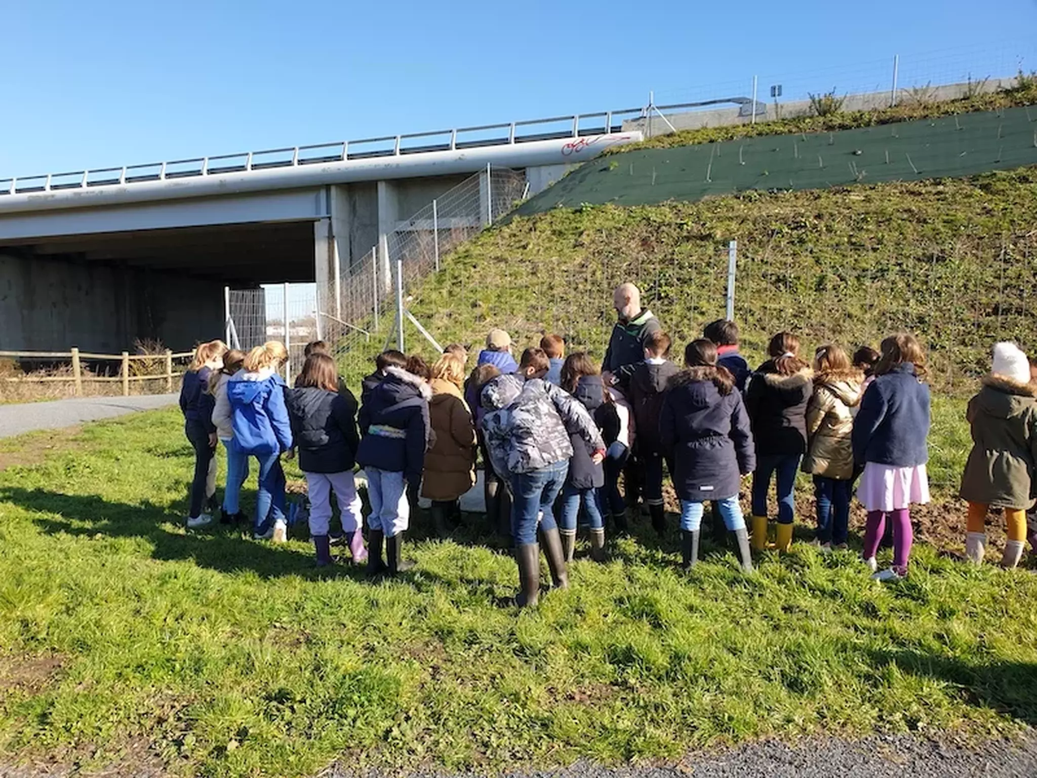Mardi 7 février 2023, les CM1 de la classe de Gaëlle Loinard, ont emprunté la voie verte pour rejoindre Christophe Lecavalier en charge des espaces verts de la ville de Pont L'Evêque.