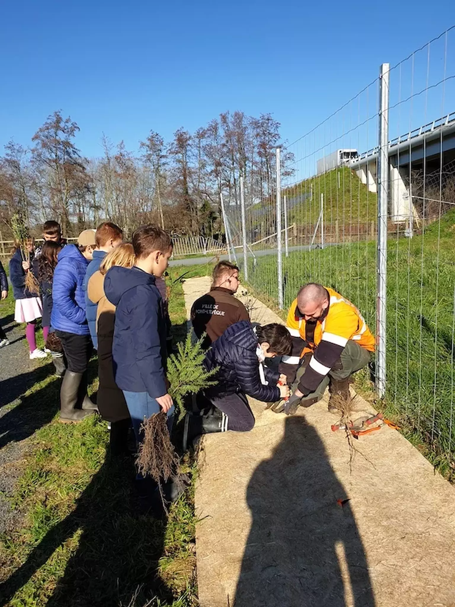 Avec l'aide des jardiniers de la ville, les élèves ont ainsi participé à la plantation d'une haie bocagère le long de la nouvelle voie verte.