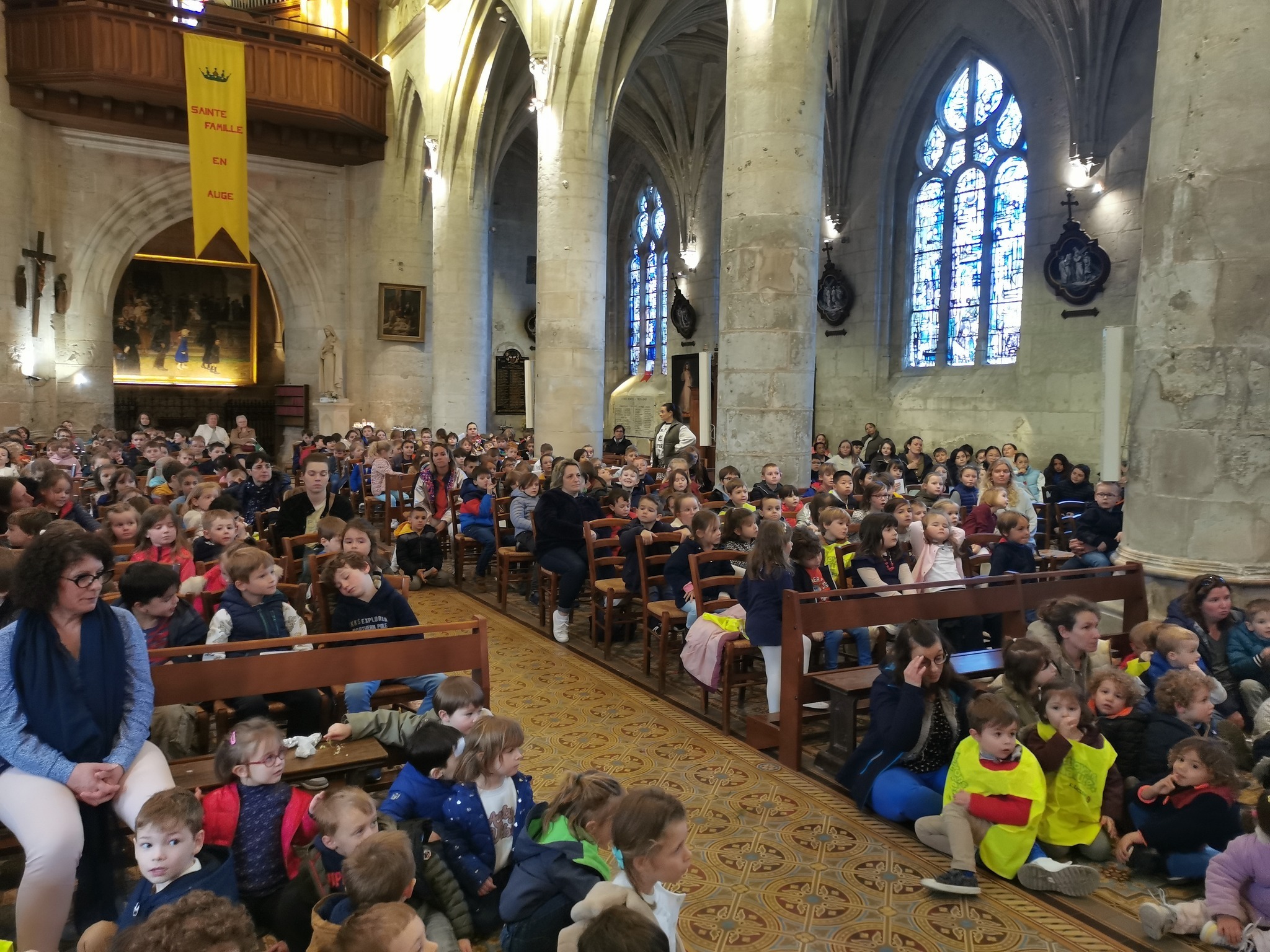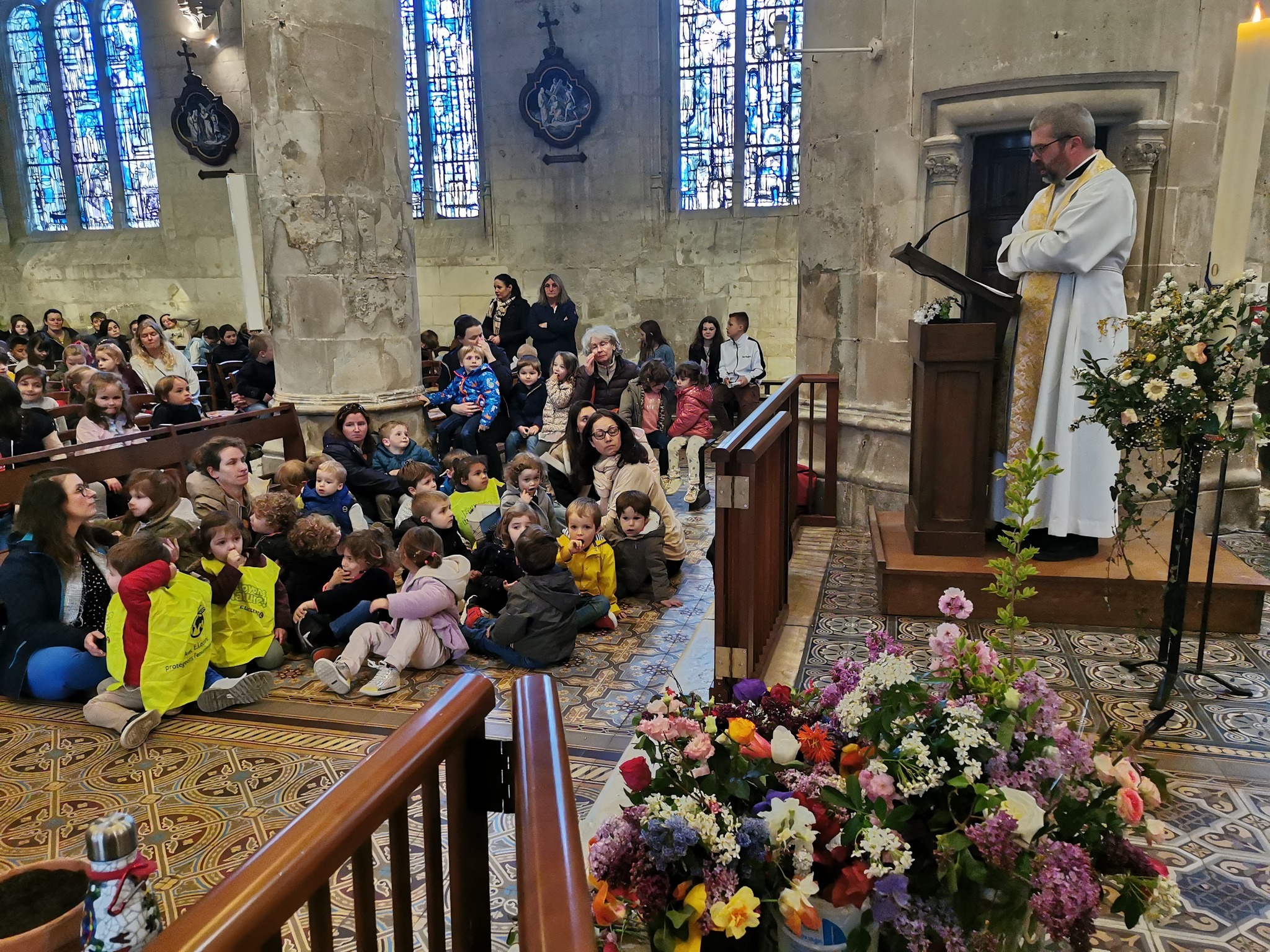 Le Père Hugues a accueilli tous les élèves de l'école pour célébrer la résurrection du Christ. Pour cela, chaque enfant a apporté une fleur, symbole du retour à la vie de la nature.
